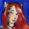 Description: a Stephanie Roberts painting made into an icon with a pretty redheaded girl